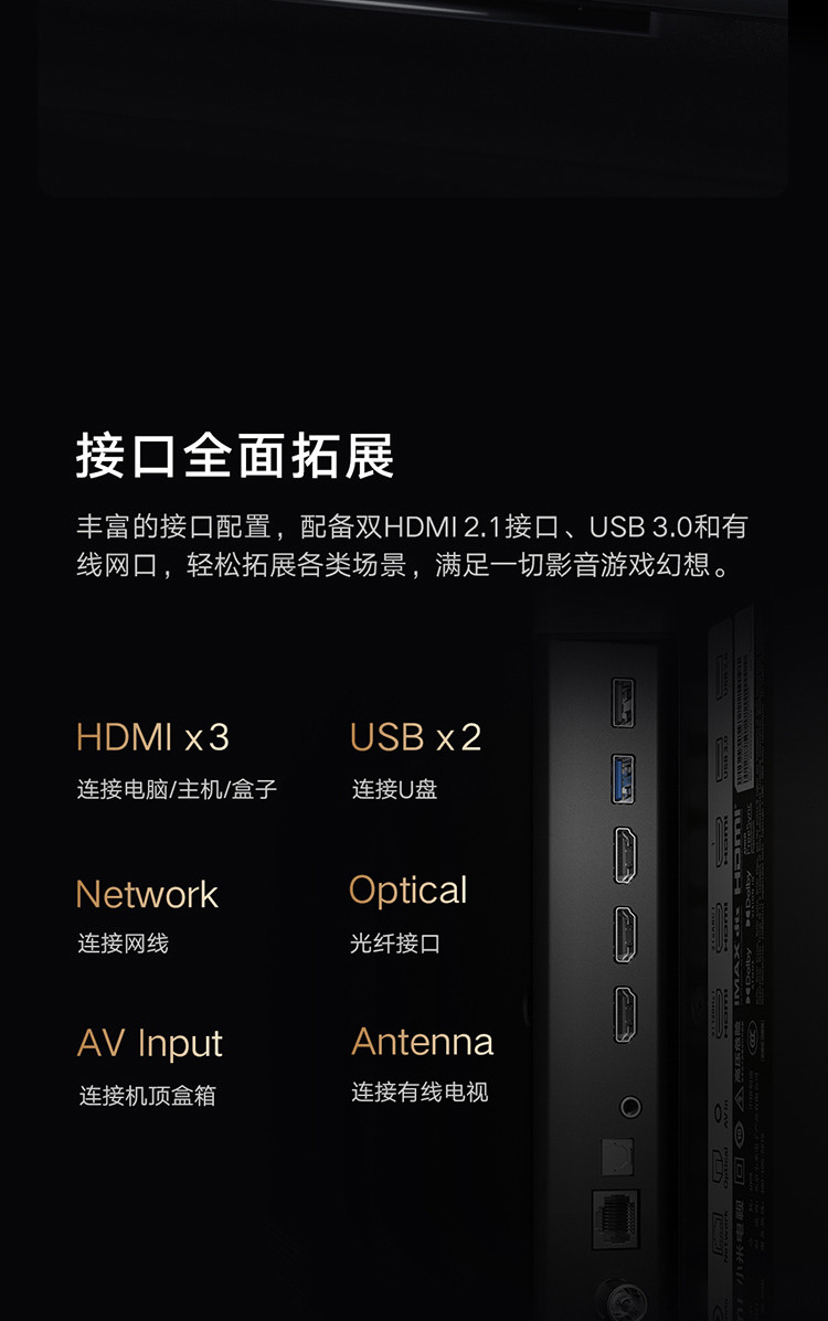 | HDMI接口 | HDMI 2.1 x2(含一个eARC),HDMI 2.0 x1 |
