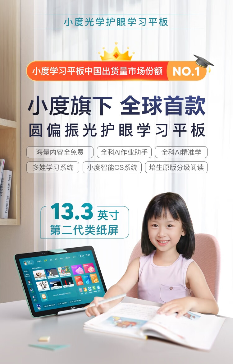 小度光学护眼学习平板Z20 Plus智学版(6+256G)家教机 小学初中高中同步学习机 第二代类纸屏 培生朗文会员