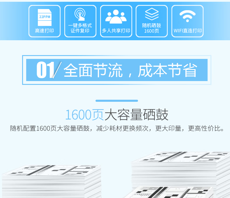 打印机×1,硒鼓×1,驱动光盘×1,电源线×1,USB连接线×1,快速安装指南×1,三包凭证×1