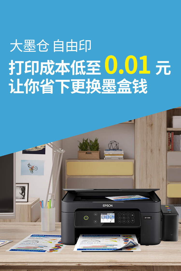 爱普生(EPSON) 2105打印机无线打印复印扫描一体机连供墨仓家用办公彩色喷墨照片学生课件打印机 2100/2105 彩打+远程连接【外置连供】