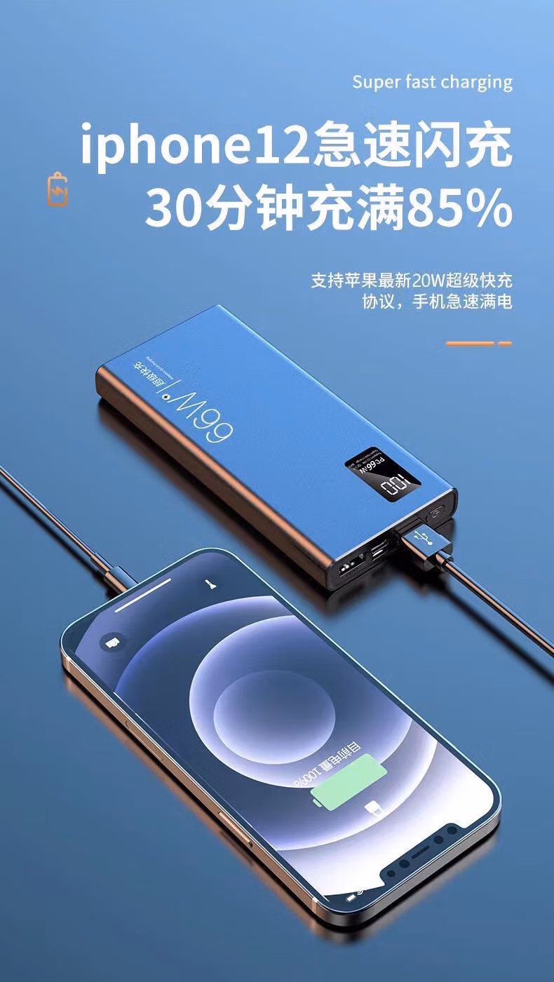 商品名称:小米(MI)适用 66W充电宝50000毫安快充自带线适用苹果 优雅白【版66W快充】提速999 20000毫安
