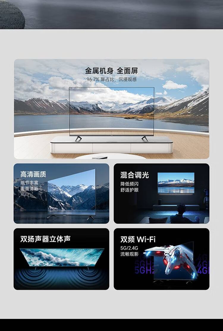 | 功能特点 | 混合调光,金属机身全面屏,高清画质 |