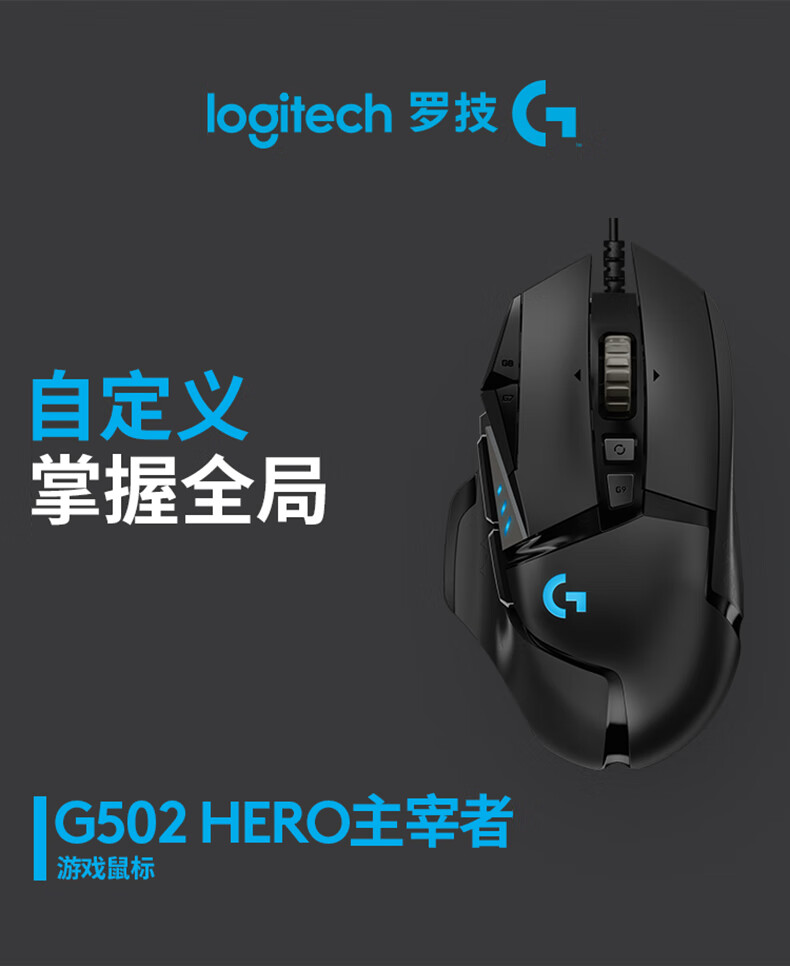 罗技(G) G502 HERO主宰者有线鼠标 游戏鼠标 HERO引擎 RGB鼠标 G系列电竞鼠标 G502 有线鼠标 (自带配重块) RGB