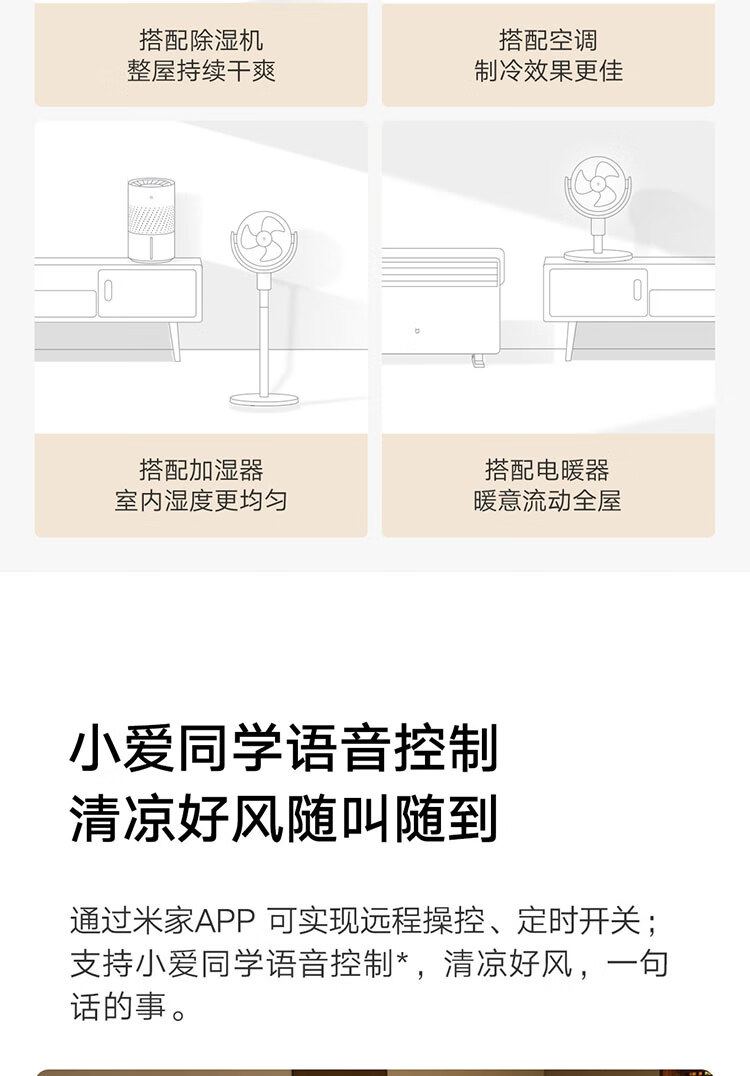 商品名称:小米(MI)循环扇家用电风扇摇头台地两用落地扇大风力智能语音轻音节能 米家直流变频循环扇