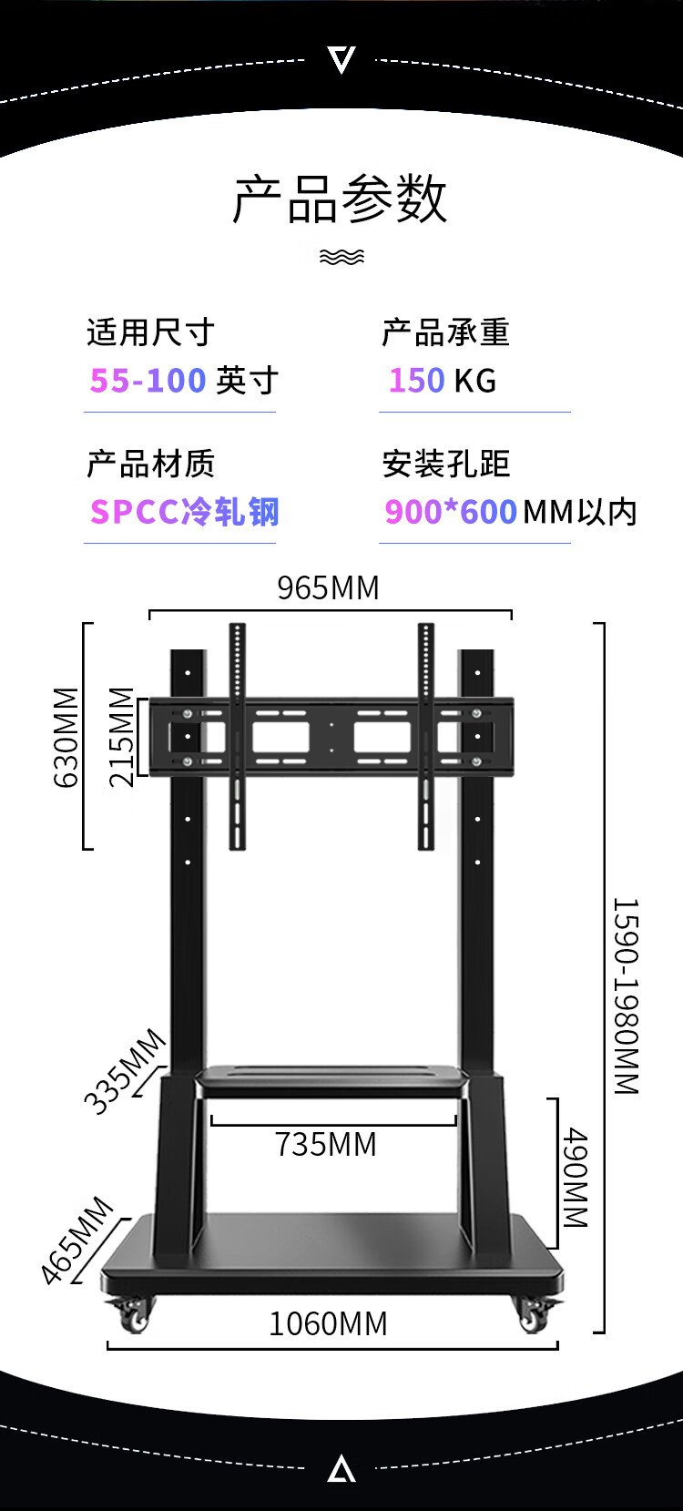 适配屏幕尺寸:70英寸,58英寸,50英寸,60英寸,55英寸,40英寸,65英寸,75英寸,85英寸,100英寸