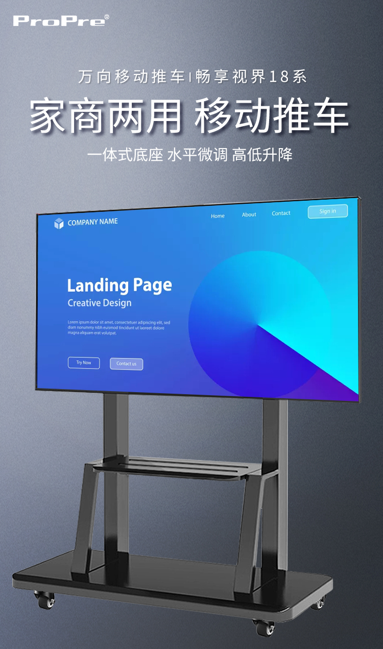 ProPre移动电视支架55-100英寸 视频会议电视挂架落地移动推车 希沃多媒体教学一体机架子 通用电视挂架