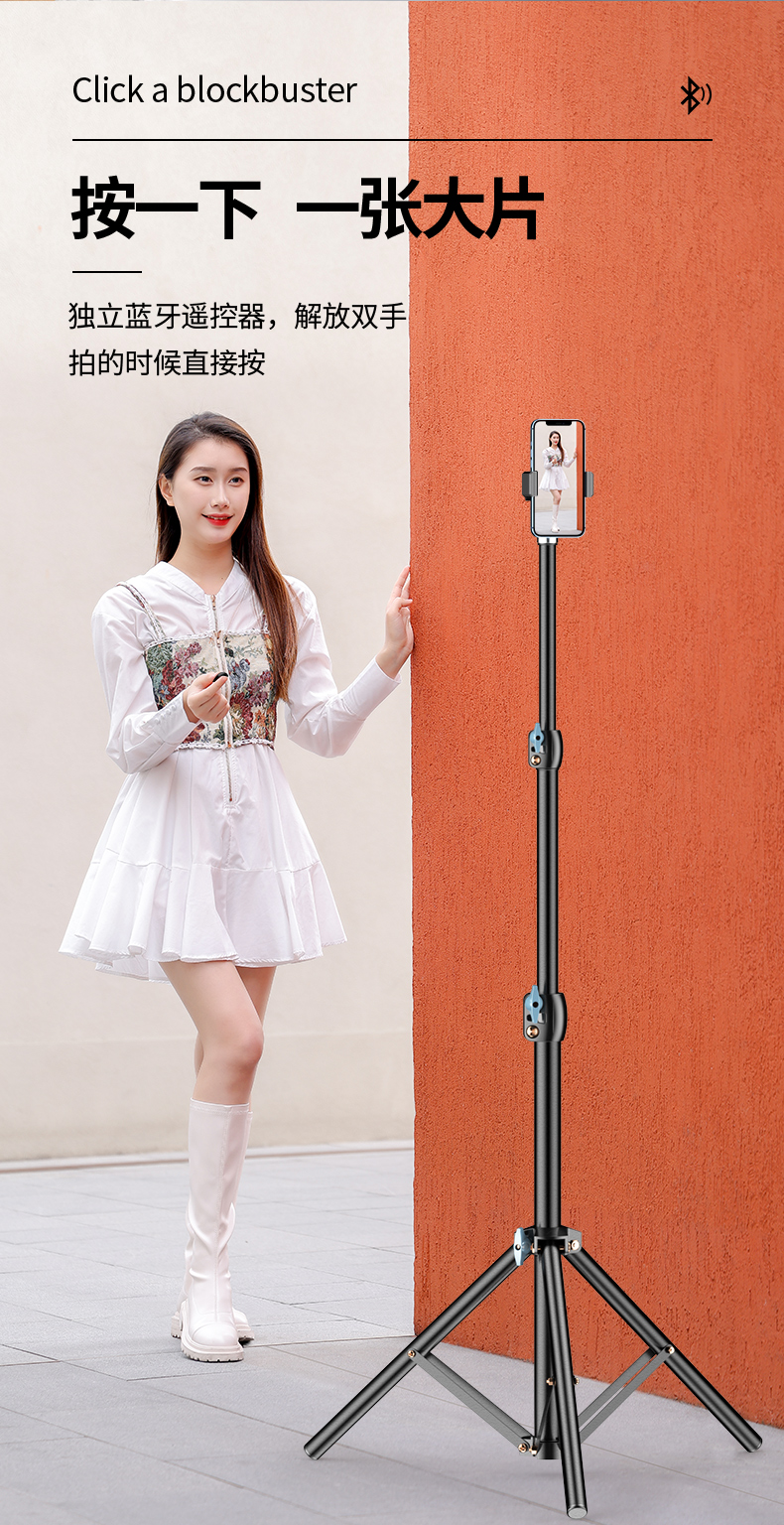 商品名称:嘉华彩【碳素钢】手机支架落地三脚架自拍摄影拍照短视频直播抖音网红户外角架杆 170cm支架【单机位+收纳包+遥控器】
