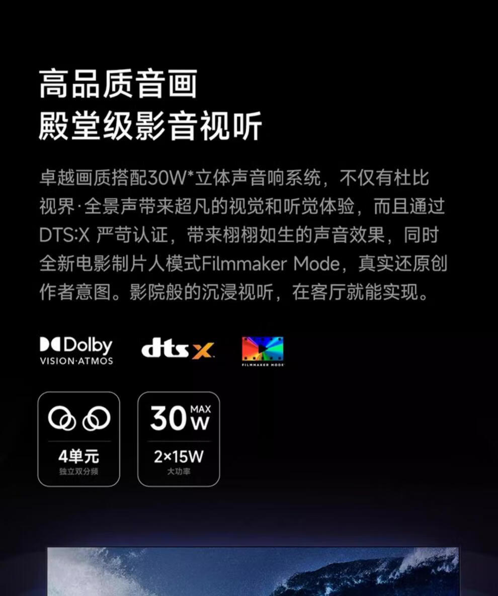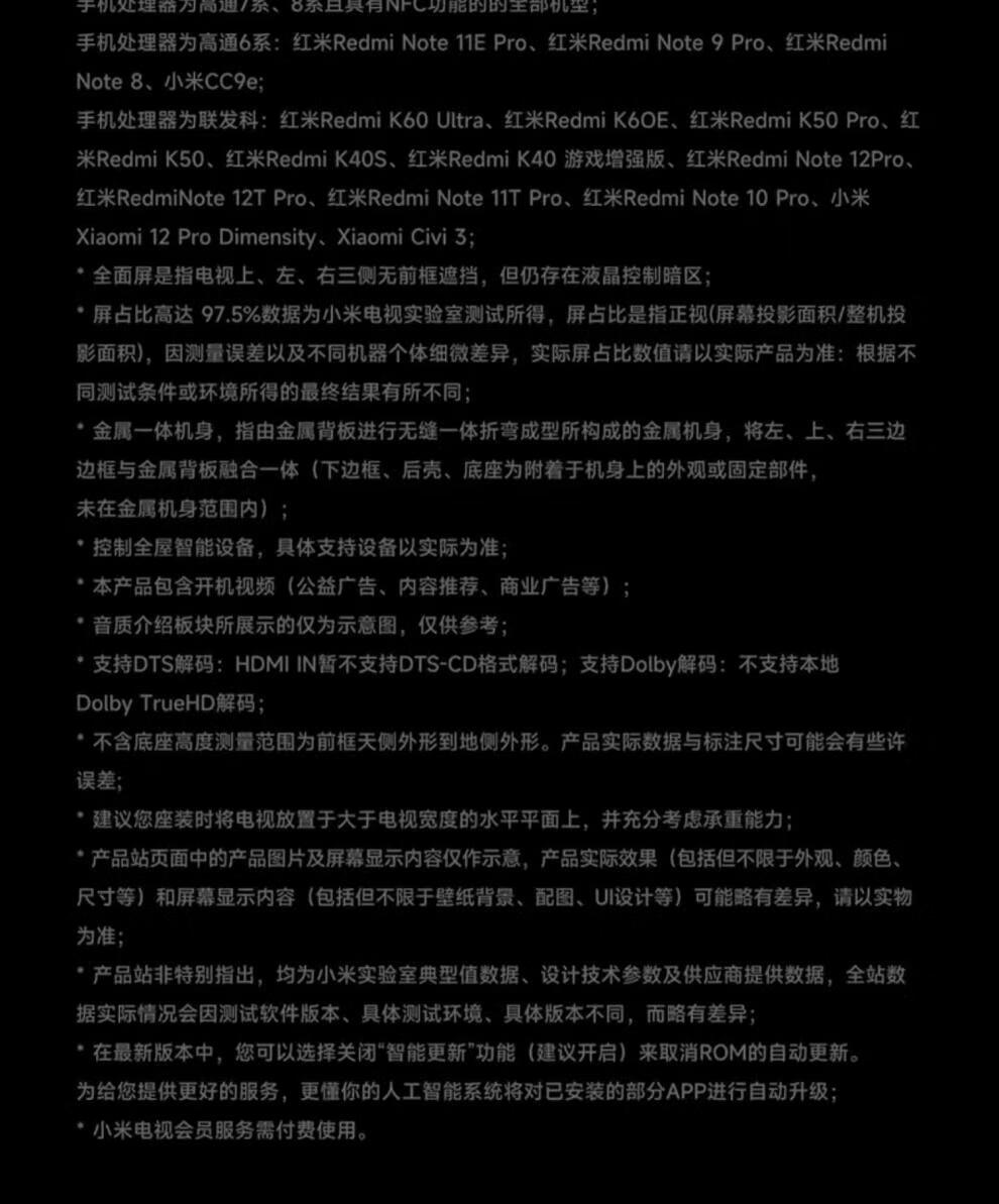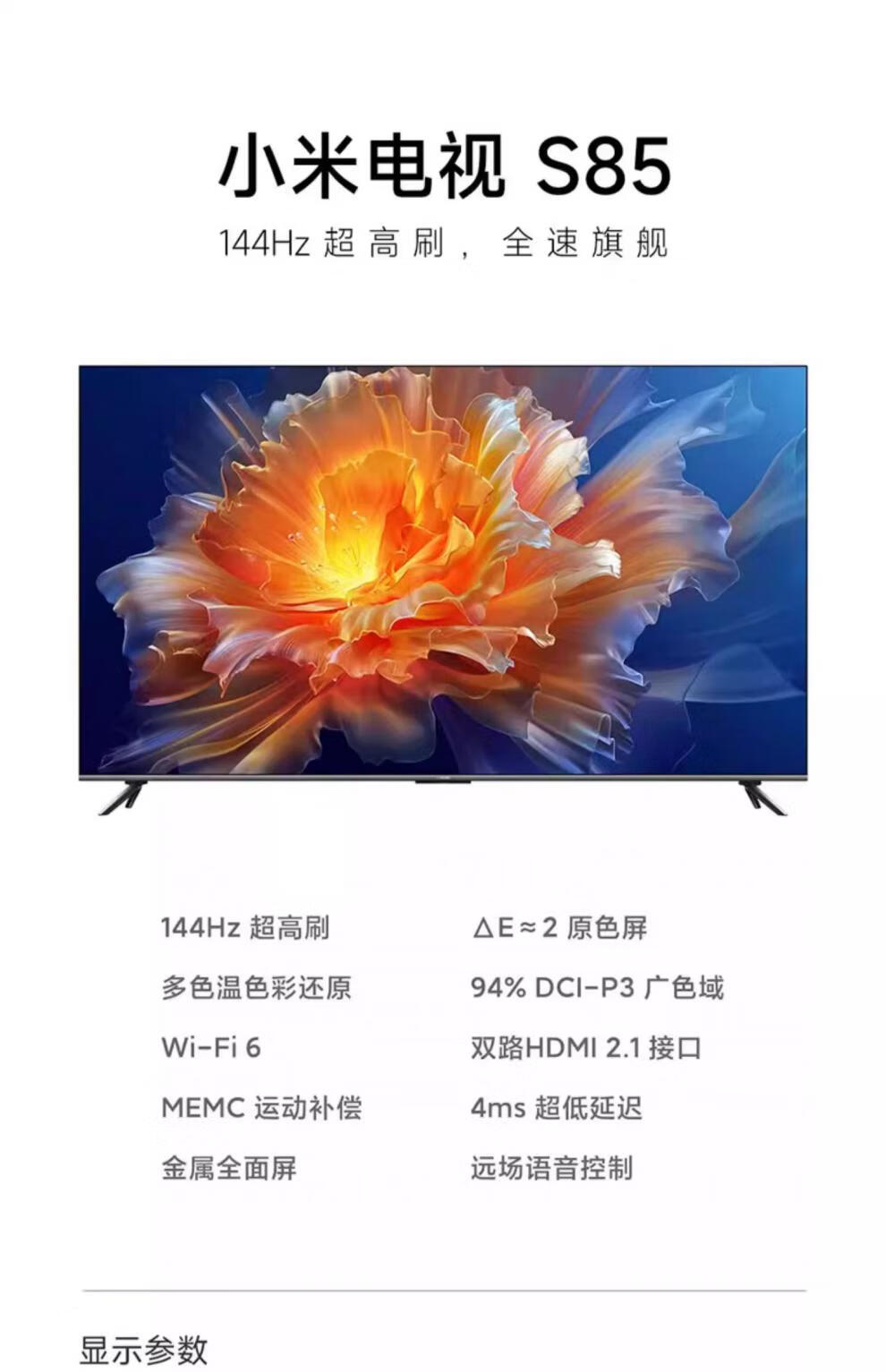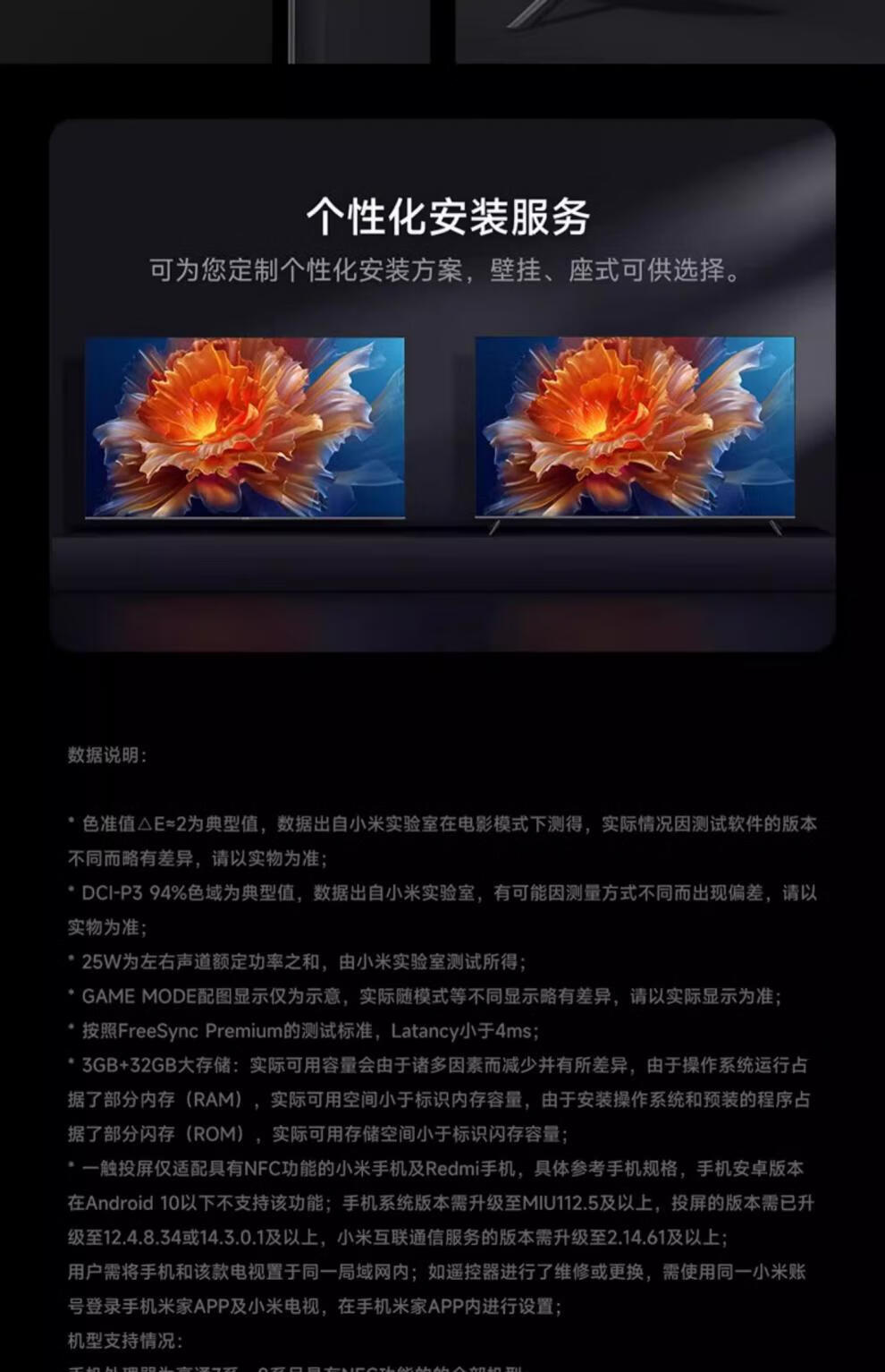 • 商品名称:小米电视S85英寸全面屏4K高清智能网络液晶电视144hz超高刷86/100 小米A Pro 85英寸 3+32G 120hz