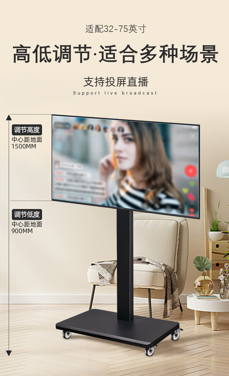 商品名称:适用可移动电视机落地式支架横竖屏旋转直播投屏广告通用挂架带轮推车 显示器款(14-37寸)适用可以横竖屏自由切换