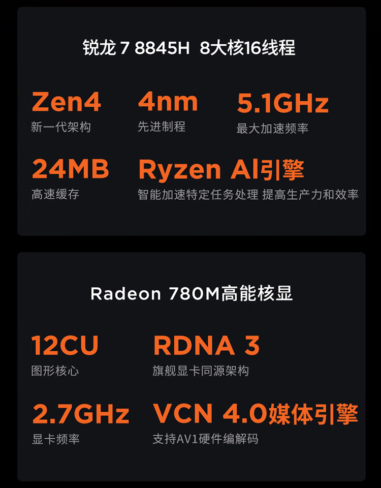 | CPU型号 | R7-8845H |