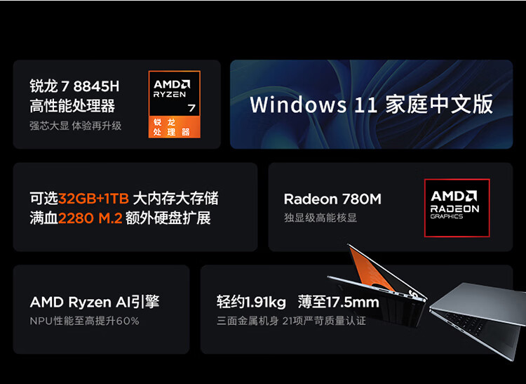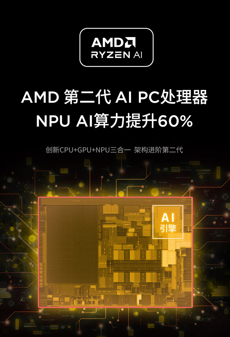 | 功能特征 | 锐龙第二代AI PC处理器,2.5K 120Hz高刷屏,人脸识别 |