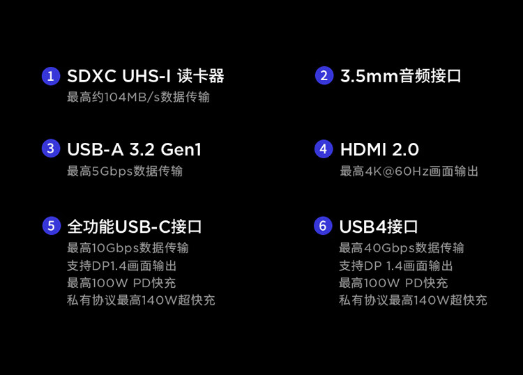 | 数据端口 | USB-A 3.2Gen 1×2+全功能USB-C×1+USB 4×1 |