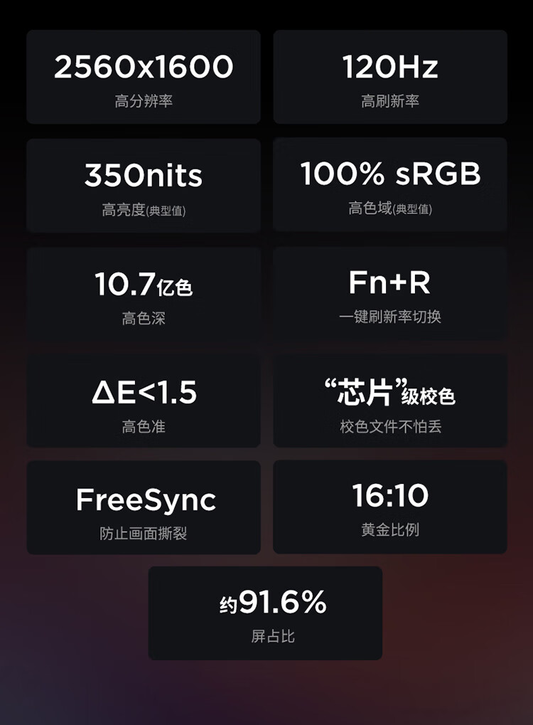 | 屏幕色彩 | 100%sRGB高色域 |