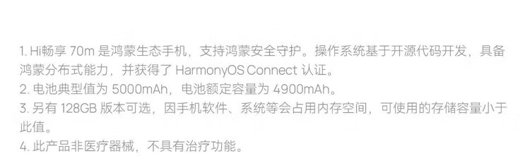 | 商品名称 | 华为智选 Hi 畅享70m 全网通版 冰晶蓝 8GB+128GB |