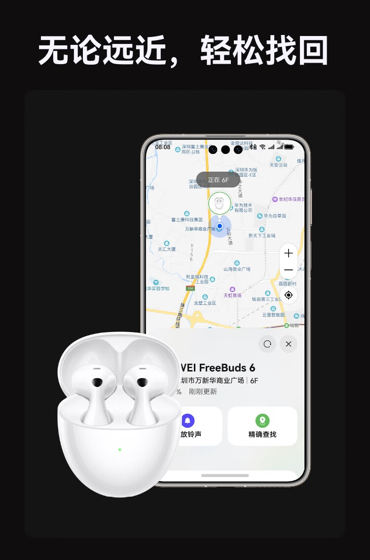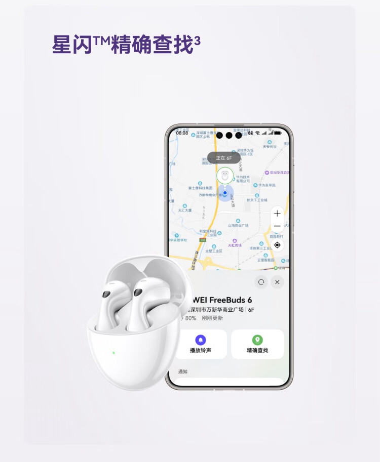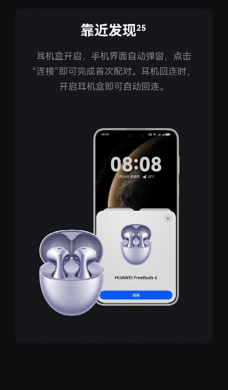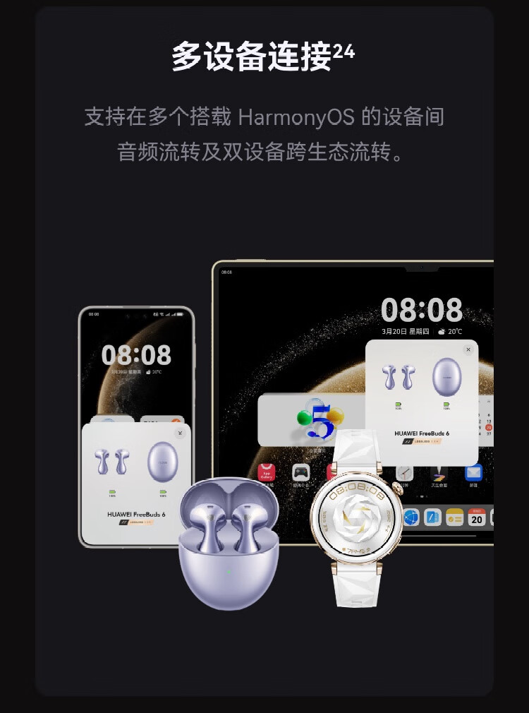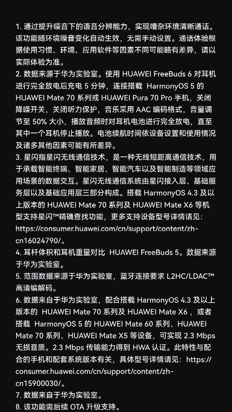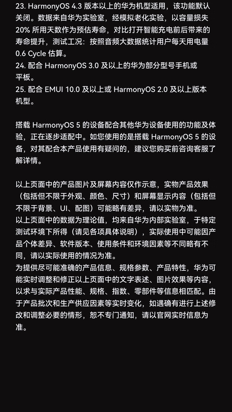 | 配置 | 外包装采用塑封,彩盒内标配:耳机 × 2(左右耳各1);充电盒 × 1;快速指南&安全信息(含保修卡)× 1;USB-C充电线 × 1(长度:约23cm);华为音乐权益卡 × 1;耳套 × 4(左右耳各2) |