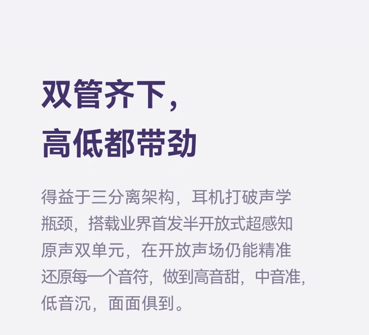 | 功能特点 | 超感知原声双单元,双向静谧通话,半开放舒适佩戴 |