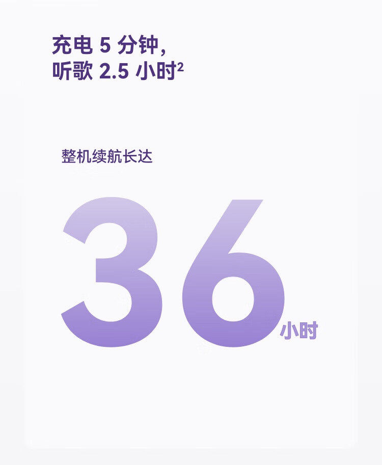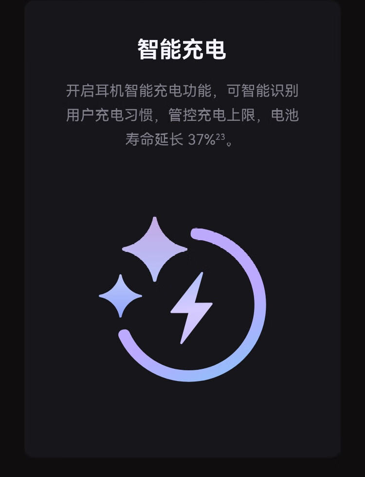 | 耳机电池容量 | 单只耳机:39.5 mAh(单只最小值) 充电盒:510 mAh(最小值) |